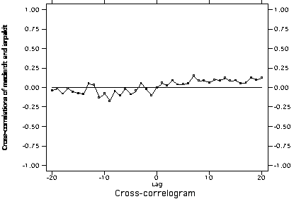 Cross-correlation of US mediation and Serbia->Bosnia cooperation with trend and autocorrelation removed from both series